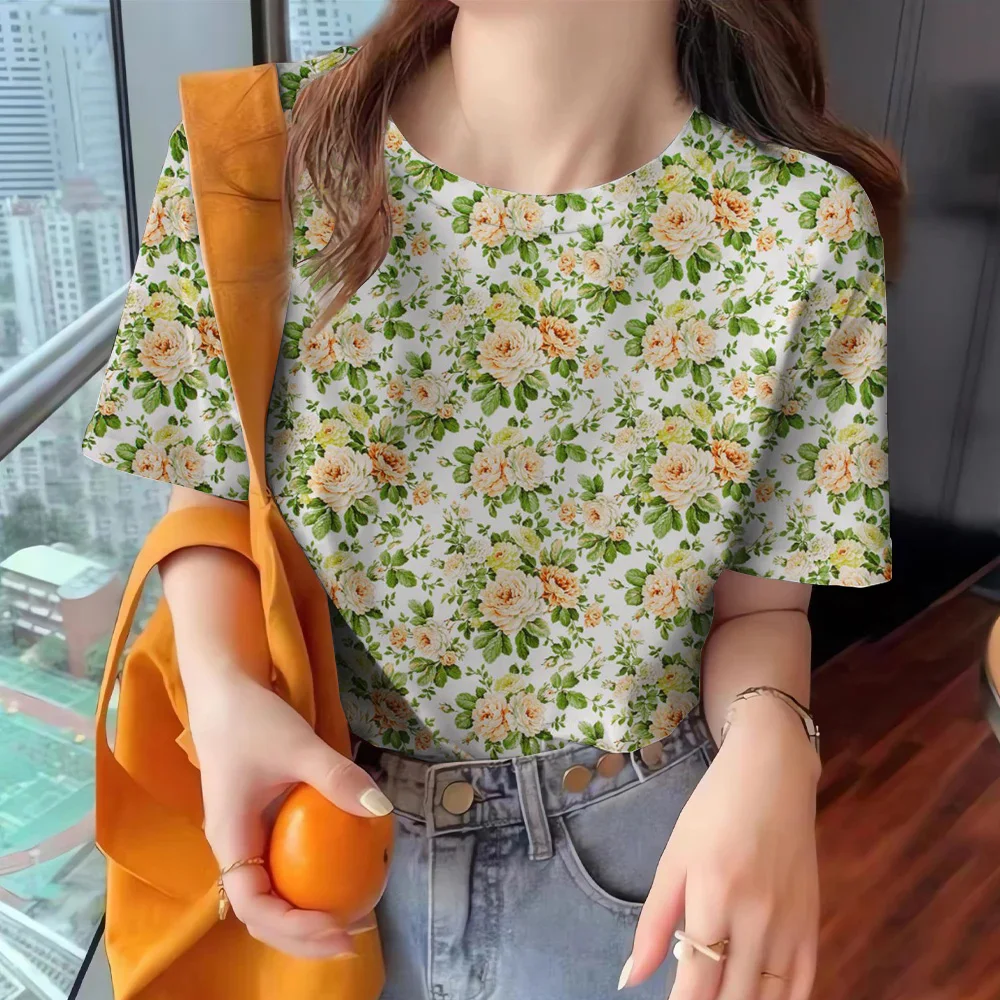 2024 Women’s Short Sleeve T-shirt Round Neck Clothing Summer Casual Top Fashion Print Half Sleeve Loose Elegant Women’s T-shirt
