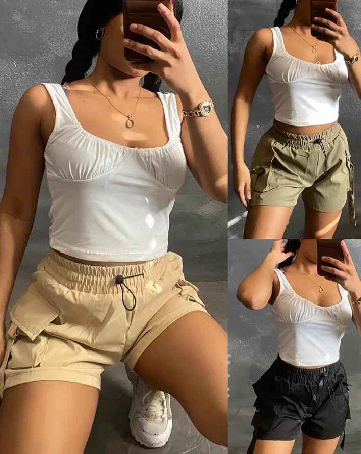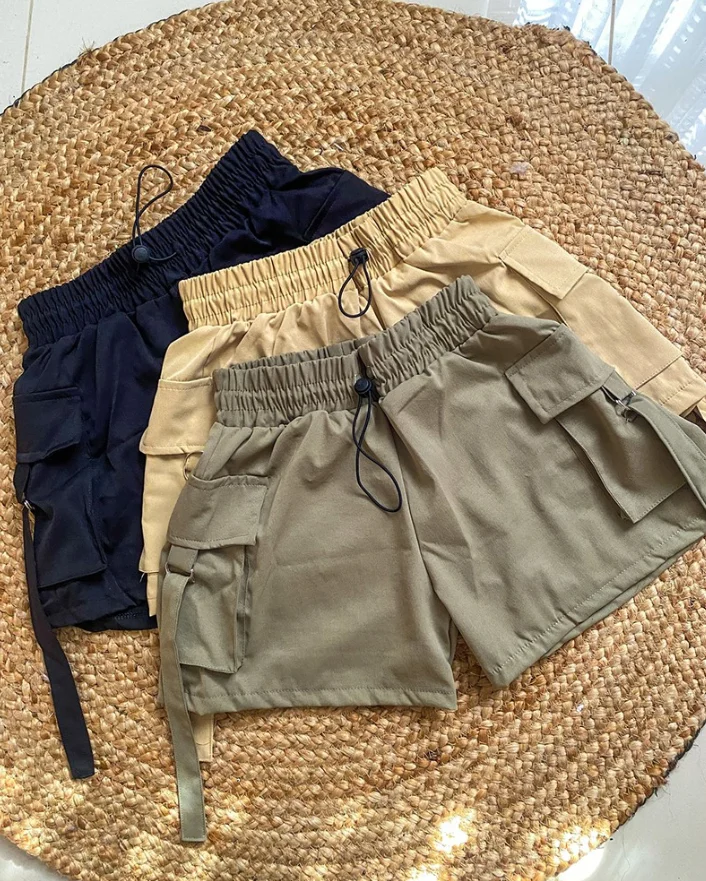Cargo Pants Woman 2025 Summer Pocket Design Drawstring Cargo Shorts Casual Strechy Waist Shorts Womens Clothing Casual Shorts